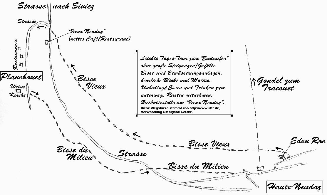 Bisse Vieux entlang nach Planchouet. Von dort geht es über den Bisse du