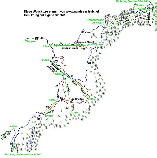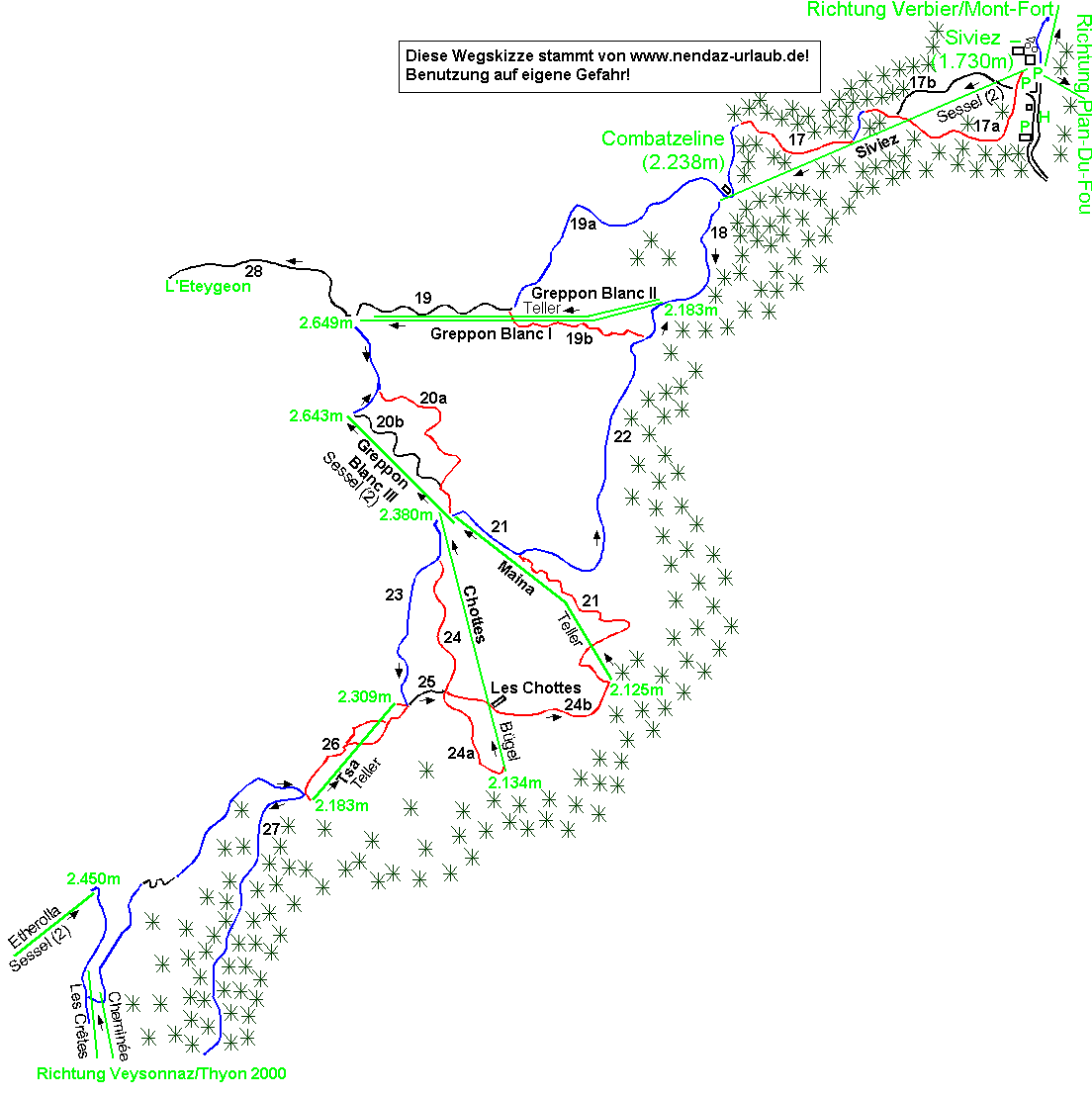 Übersicht über die von mir verwendeten Bezeichnungen für Lifte Anmerkungen zur farblichen Charakterisierung von Pisten Nachbargebiete: Plan-Du-Fou, Veysonnaz, Thyon 2000 |