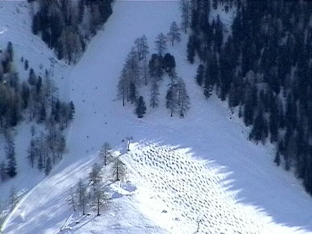 | Hintergrund: Das linke von den unteren Bildern ist vom Plan-Du-Fou (das ist der Gegenhang) aus mit sehr starkem Zoom fast frontal aufgenommen worden. Das rechte von den beiden Bildern ist dagegen von der Station Combatzeline aus leicht schräg mit so gut wie keinem Zoom aufgenommen worden. | |