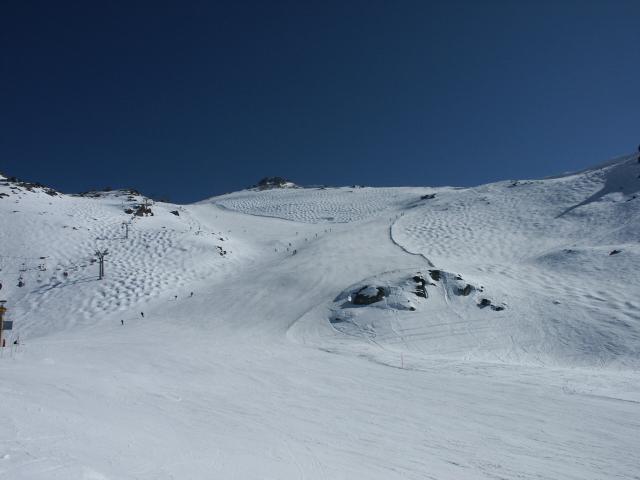 Hier muss man zwei Pisten unterscheiden: Direkt am Sessel gelegen ist eine relativ steile Piste, die in der Regel, ähnlich wie am Doppelteller Greppon Blanc, nach meiner Meinung schwarz ist, aber durchaus schön zu fahren sein kann. Definitiv schwarz sind die vielfältigen Buckelmöglichkeiten, die man hier fahren kann.