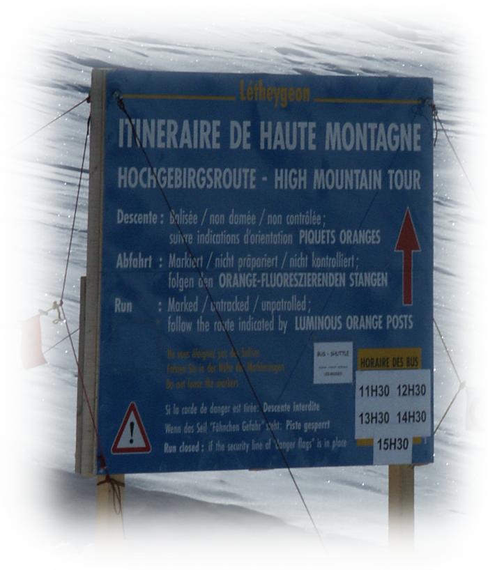 L'Eteygeon, das früher "Léteygeon" geschrieben wurde, ist eine nicht kontrollierte und unpräparierte Piste, die nur durch orang-farbene Stangen markiert ist. Überflüssig zu erwähnen, dass man diese Abfahrt nur machen sollte, wenn es das Wetter und die Lawinensituation zulässt und die Piste nicht gesperrt ist. Meistens ist ein schmales Band eingefahren, so dass man gut runter kommt auch ohne Tiefschneeliebe. Allerdings geht es höhenmässig sehr tief hinunter, so dass man sich entweder auf einen längeren Fussmarsch einstellen oder auf die richtigen Schneeverhältnisse warten sollte. Und wie gesagt, sie ist unpräpariert, man kann also alles vorfinden ... um an den Einstieg in diese Piste zu kommen, muss man den rechten der Greppon-Blanc-Doppelschlepper nehmen und dann noch etwa 20 Meter bergauf laufen.