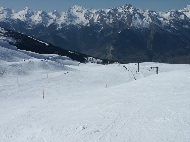 Die Abfahrt von Combatzeline nach Siviez ist eine schöne, breite Piste, die aber stellenweise relativ steil ist. Direkt am Beginn und etwa in der Mitte der Abfahrt wird die Piste durch kurz Wege unterbrochen, mit denen man am Hang etwas seitlich geführt wird. Das letzte Stück kann für unsichere etwas eklig sein, da man an einem nach rechts stark abfallenden Hang nach links hinüber fahren muss. Am Nachmittag -insbesondere später in der Saison- kann die Piste allerdings gerade in der unteren Hälfte sehr weich und sulzig werden, so wie alle Talabfahrten.